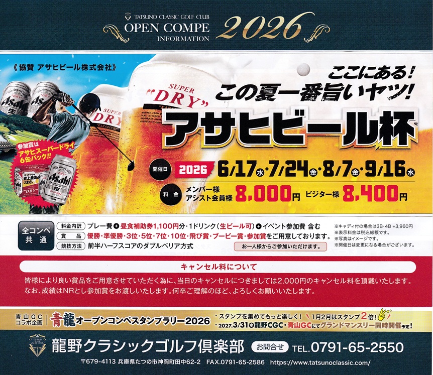 龍野クラシックゴルフ倶楽部自社オンライン予約が開始されます。